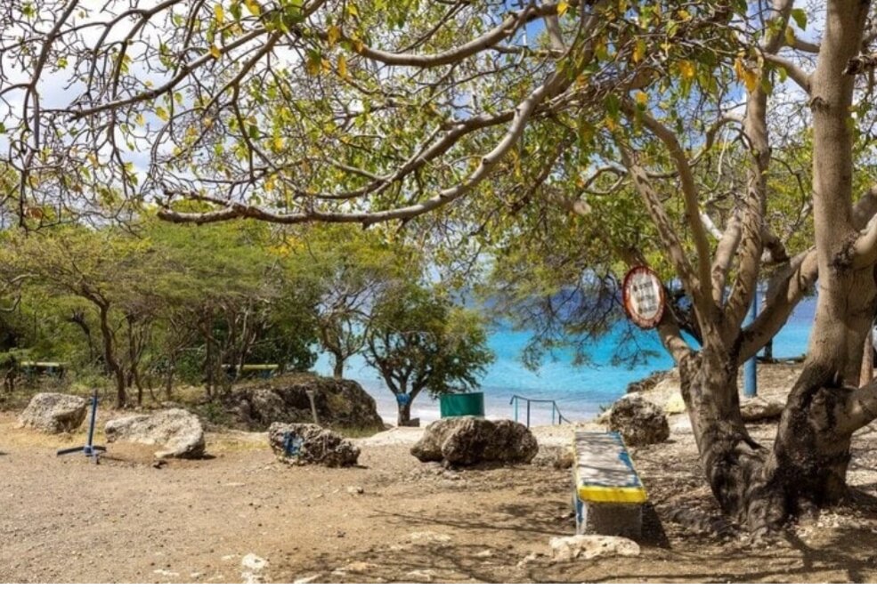 Cây manchineel với biển cảnh báo trên đảo Curacao thuộc vùng Caribe. (Ảnh: nathab)