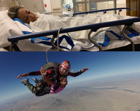 Đi nhảy dù nhưng đến bệnh viện trong túi bọc xác. Ảnh: World Unluckiest Travellers