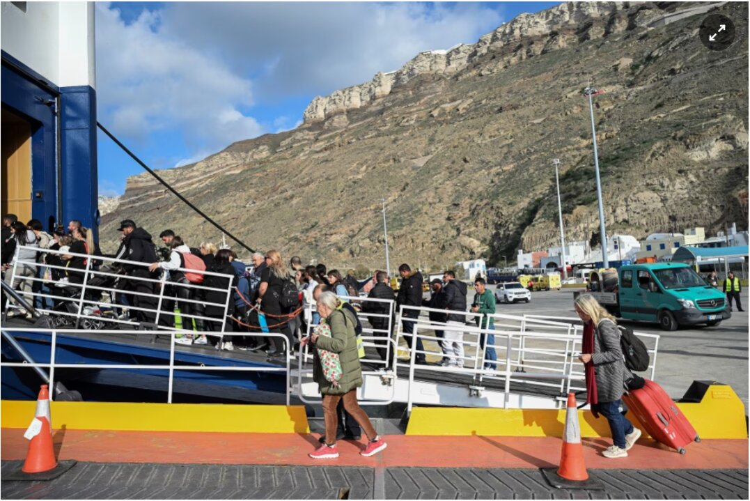 Trong bối cảnh giới chức duy trì báo động ở mức cao do lo ngại thảm họa thiên nhiên sắp ập tới, người dân, khách du lịch và người lao động đang tìm cách nhanh chóng rời khỏi đảo Santorini bằng phà và máy bay.