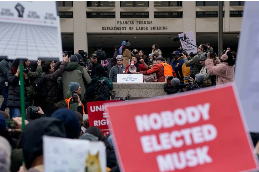 Biểu tình phản đối những kế hoạch của Tổng thống Mỹ Donald Trump bên ngoài Bộ Lao động tại Washington hôm 5/2. Ảnh: Reuters.