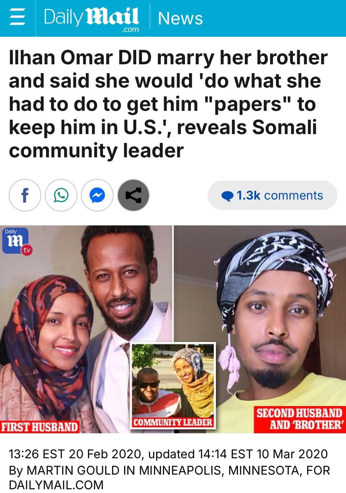 Fbi thời Biden đã có tất cả hồ sơ nhưng không truy tố. Một thám tử tư đã bỏ hàng trăm ngàn để theo dõi người anh từ Mỹ qua Âu Châu qua Châu Phi để lấy tài liệu. DNA từ mẫu tàn thuốc của người anh và ông hút của Ilhan Omar trùng hợp 99,9999 là anh em ruột. Hình.