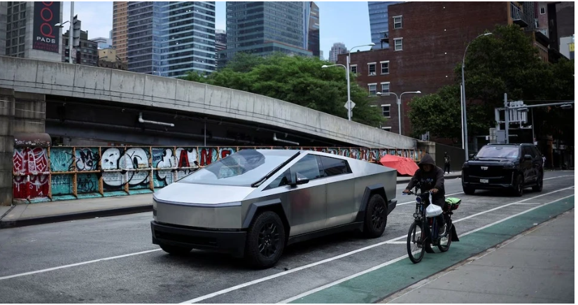 Chiếc xe Tesla Cybertruck trên đường phố thành phố New York. Ảnh: Reuters.