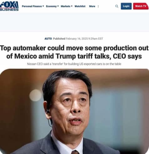 Ông Makoto Uchida cho rằng thuế quan của Tổng thống Trump có thể buộc nhà sản xuất xe hơi Nissan phải chuyển hoạt động sản xuất ra khỏi Mexico. ( Thôi rồi ... Mexico vừa nhận trả về một mớ dân bất hợp pháp, toàn là dân lao động tay chân thôi ...mà nhà máy sản xuất xe hơi trong nước giờ phải buộc dời đi , phen này bà Tổng thống dựa hơi Mafia để lên gân, sẽ khóc bằng tiếng Ch ệt luôn )