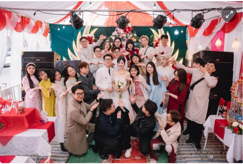 Ngày 16/2, hôn lễ của cô dâu Thu Hà (sinh năm 1999) và chú rể Xuân Dân (sinh năm 1998) được tổ chức tại Hà Nội. Giữa buổi lễ, có một món quà cưới đặc biệt được hé lộ. Đó là clip ghi lại lời chúc phúc của bạn bè gửi đến cô dâu chú rể.