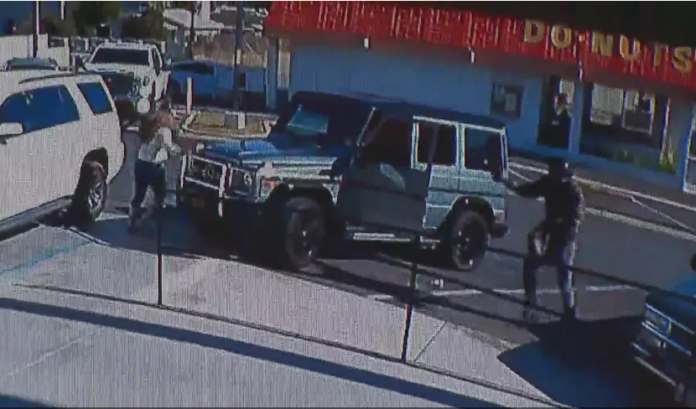 Giới chức Sở Cảnh Sát San Bernardino SBPD chiếu một đoạn phim về vụ sát nhân trong một cuộc họp báo hôm Thứ Ba, 18 Tháng Hai, trong đó có cảnh nạn nhân và một người đàn ông lời qua tiếng lại rồi động tay động chân sau đó kẻ tấn công rút súng và bắn chín phát đạn.