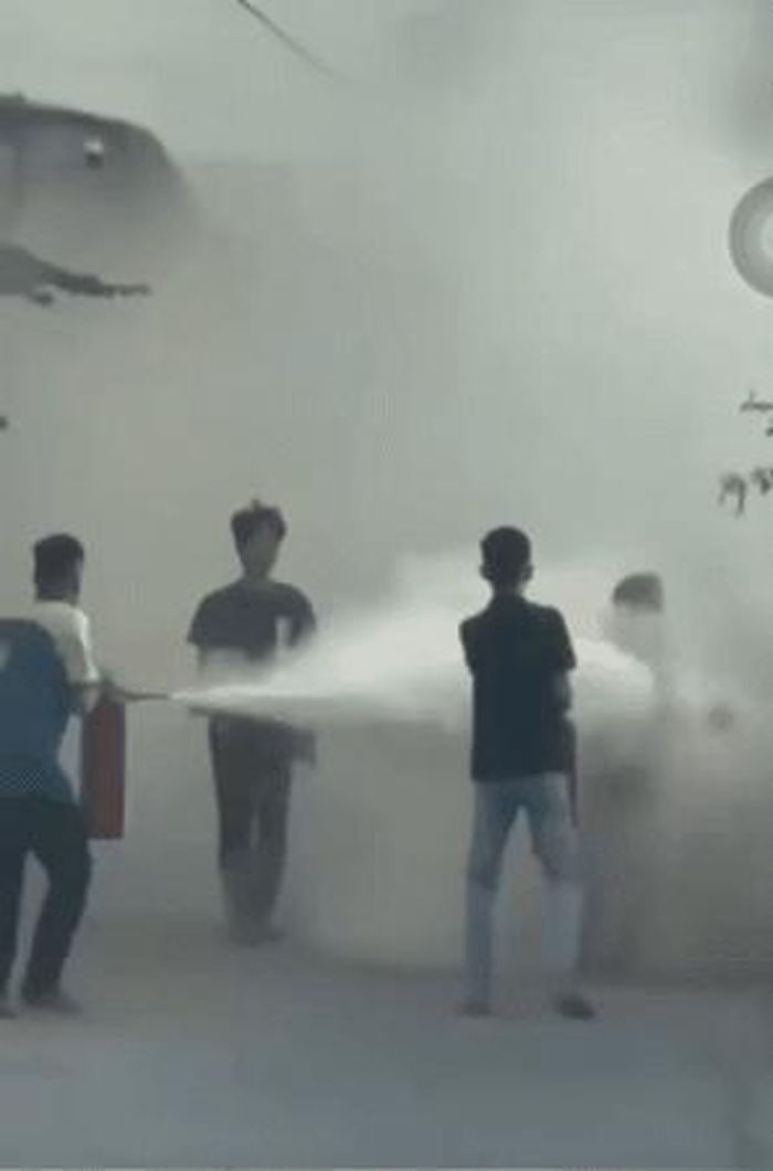 Mọi người xung quanh phát hiện vụ việc đã dùng bình chữa cháy dập lửa, khống chế đối tượng Trung.
