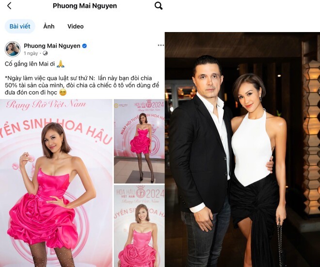 Sau khi đăng đàn tố chồng ngoại tình, mọi động thái của MC Phương Mai luôn nhận được sự chú ý từ khán giả. Mới đây trên trang cá nhân, nữ MC còn tiết lộ đang trao đổi với luật sư về vấn đề phân chia tài sản khi ly hôn với chồng. Phương Mai cập nhật thông tin mới: "Ngày làm việc qua luật sư thứ N: Lần này bạn đòi chia 50% tài sản của mình, đòi chia cả chiếc ô tô vốn dùng để đưa đón con đi học".