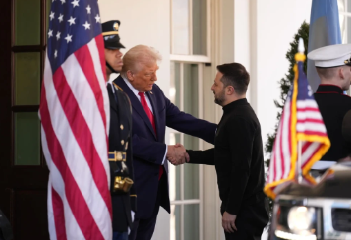 Khi ông Zelensky đến Nhà Trắng ngay sau đó, ông Trump đã chào đón nhà lãnh đạo Ukraine ở lối vào phía Tây của Nhà Trắng và tay bắt mặt mừng.