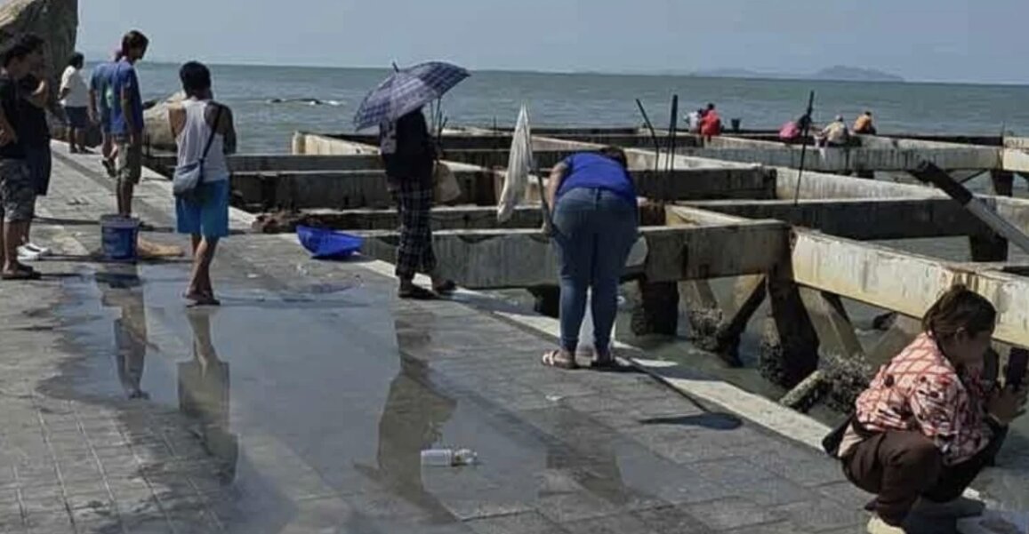 Vào ngày 5 tháng 3 năm 2025, các phóng viên đã đến bãi biển Bangsaen, khu vực Laem Tan, huyện Saensuk, huyện Mueang, tỉnh Chonburi và ghi nhận được một hiện tượng độc đáo: Hàng loạt tôm bọ ngựa đuôi đỏ tràn ngập ven bãi. Nhiều người dân địa phương đã tranh thủ dùng thìa, rổ hoặc thóp tay để bắt những sinh vật này, tạo nên khung cảnh vô cùng nhộn nhịp và hào hứng.