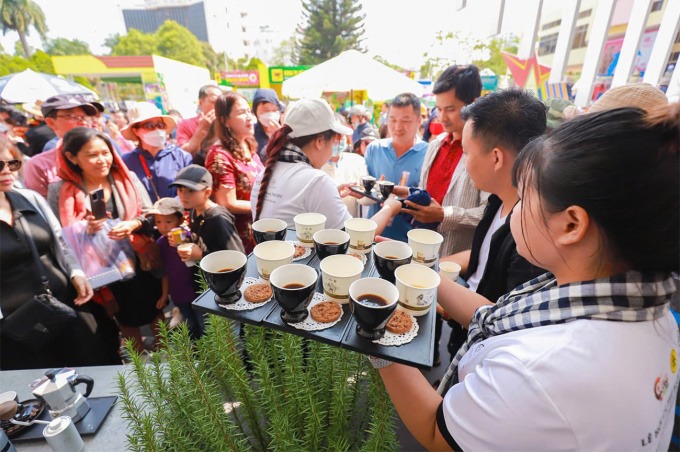 Khách thưởng thức cà phê tại Buôn Ma Thuột dịp lễ hội 2023. Ảnh: BTC