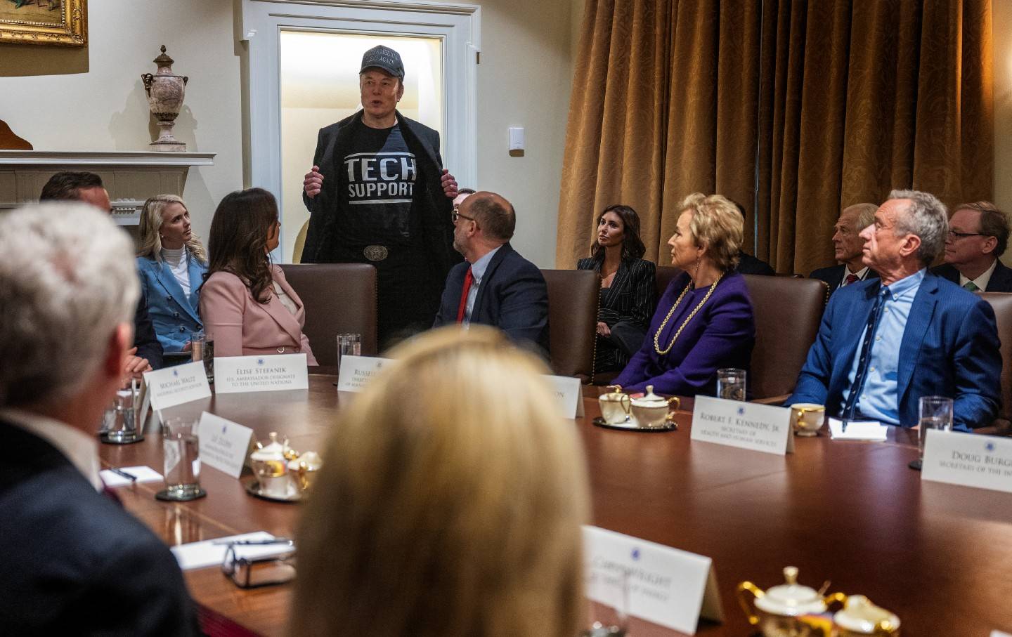 Trump, giống như một trùm Mafia, đã lắng nghe những capo khác nhau của mình , và sau đó trấn an họ. Ông nói Musk không thể trực tiếp sa thải nhân viên của họ, nhưng cũng bảo vệ cậu bé DOGE của mình. Sau cuộc họp, trên Truth Social, Trump kêu gọi cắt giảm nhân sự chính xác hơn: "Chúng tôi nói 'dao mổ' thay vì 'rìu'."