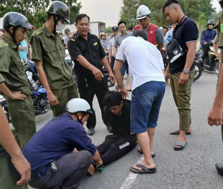 Lúc đó, những người qua đường kịp thời giật lấy hộp quẹt, khống chế nghi can và giao cho công an.