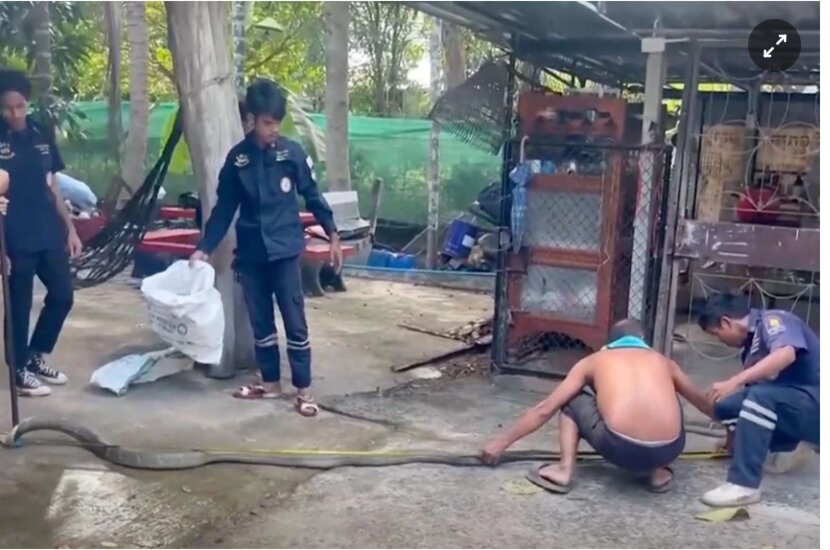 Con rắn hổ mang dài 4 m được tìm thấy tại nhà dân ở Thái Lan. Ảnh: Newsflare.