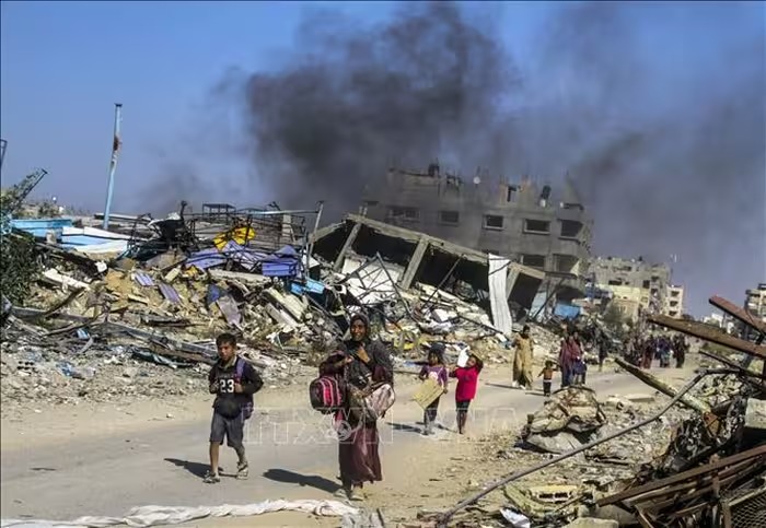 Người dân sơ tán tránh xung đột tại thành phố Gaza. Ảnh minh họa: THX/TTXVN