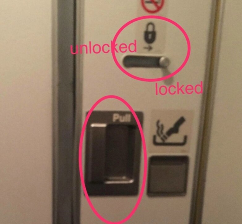 Cửa nhà vệ sinh luôn có các ký hiệu. Hành khách chỉ cần đọc và làm theo. Ảnh: Travel Stack Exchange
