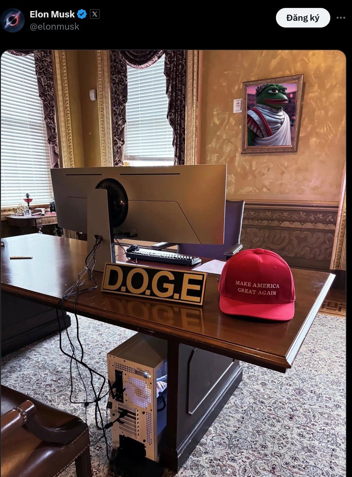 "Văn phòng DOGE của tôi với Kekius Maximus vĩ đại quá cố trên tường", Giám đốc điều hành Tesla viết.