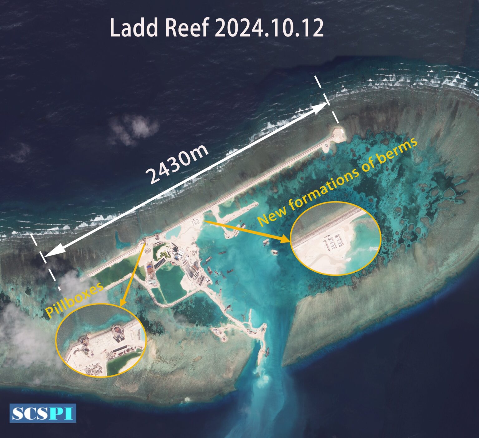 AMTI trước đây đã tường trình về việc xây dựng sơ khởi các cơ sở phòng thủ tại một số thực thể, tuy nhiên, người ta không thấy có bao nhiêu cơ sở mới được tiến hành từ cuối năm 2024 sang đến đầu năm 2025.