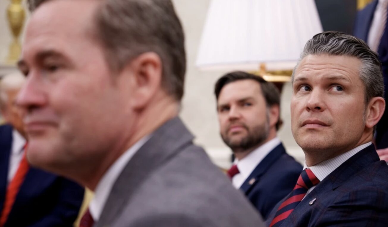 (từ trái sang) Cố vấn an ninh quốc gia Mỹ Mike Waltz, Bộ trưởng Quốc phòng Mỹ Pete Hegseth và Phó Tổng thống Mỹ JD Vance. Ảnh: GETTY IMAGES