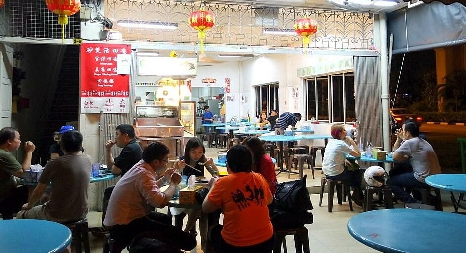 Hong Chang Frog Porridge and BBQ Fish: Ngoài Lau Pa Sat, đảo quốc sư tử còn nhiều điểm ăn đêm hấp dẫn khác như Hong Chang Frog Porridge and BBQ Fish (cháo ếch Hong Chang) tại 2 Geylang Lor 11. Quán mở cửa đến 2h sáng với thực đơn đa dạng, gồm cháo ếch niêu đất, cá đuối nướng BBQ trứ danh cùng các loại hải sản. Ảnh: Miss Tam Chiak