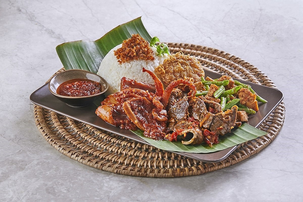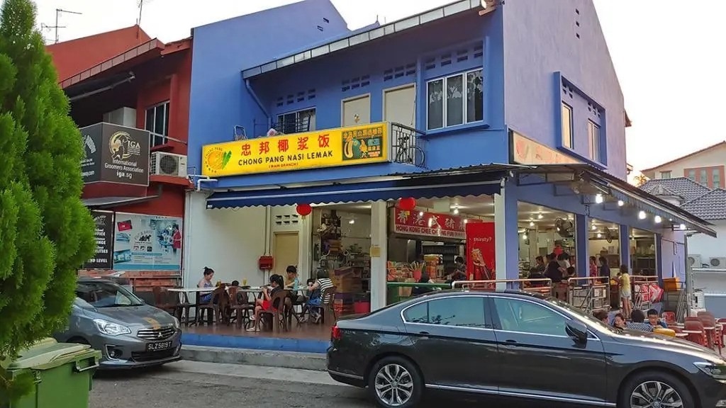 Chong Pang được một số người gọi là nơi bán nasi lemak ngon nhất đảo quốc, thành lập từ năm 1973. Món ăn tại đây được phục vụ theo kiểu "cơm bình dân" với đĩa cơm đầy đặn cùng thức ăn kèm bên trên. Ngoài phần lẻ, quán còn có dạng combo như: Classic Combo cho hai người gồm cánh gà, chả cá thu otah và thịt nguội. Trong ảnh là Premium Combo với các món kèm đắt tiền hơn như mực sốt sambal và tôm. Sốt sambal tự làm của quán được nhiều thực khách khen ngợi vì trung hòa vị ngọt và cay, làm tăng hương vị của cơm. Ảnh: Oddle Eats