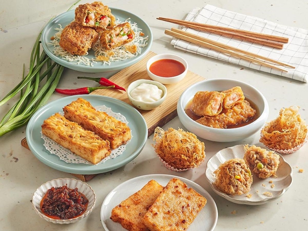 Trong ảnh là món tàu hũ ky cuộn hải sản với phần nhân cá, trứng và thanh cua, ăn kèm nước dùng thanh nhạt - một trong những lựa chọn được thực khách yêu thích khi đến Swee Choon. Một số món bán chạy khác như bánh chiên, bánh cuốn tôm, đậu hũ phủ đầy hành phi giòn rụm...