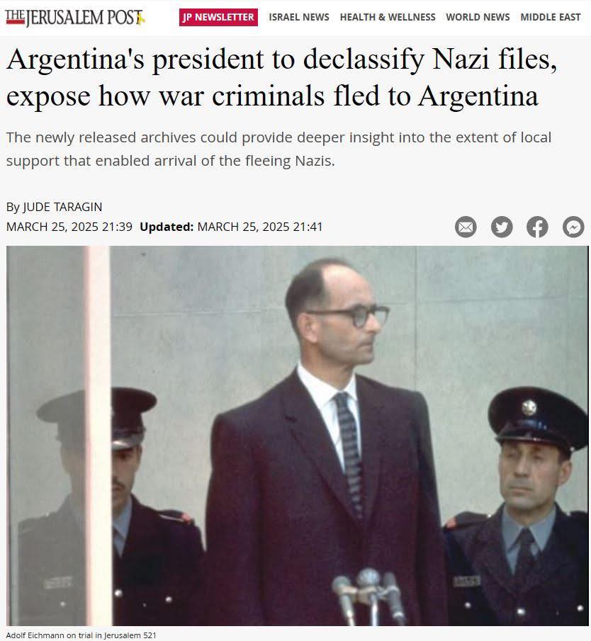 Argentina sẽ công bố tất cả các tài liệu bí mật về Đức Quốc xă ở Nam Mỹ sau năm 1945.