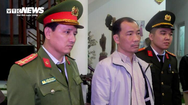 Cơ quan An ninh Điều tra Công an TP Huế thi hành lệnh khởi tố, bắt giam Nguyễn Xuân Bình. (Ảnh: Sông Hương)