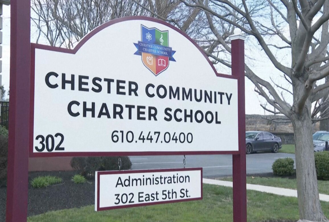 Một biển báo dựng bên ngoài Trường Cộng đồng Chester vào ngày 31/3/2025, tại Chester, Pa. (Ảnh: AP)