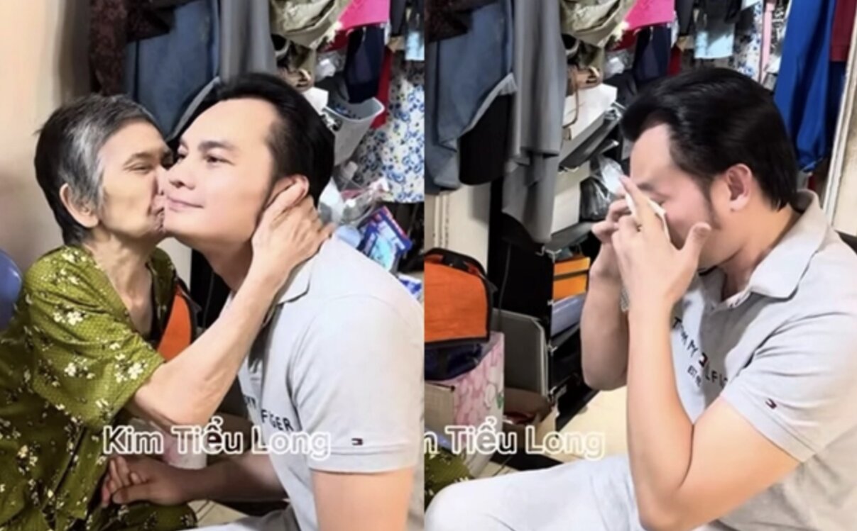 Kim Tiểu Long nói tới đây, nghệ sĩ Thanh Thế mới nhớ ra anh và hôn lên má: “Má quên”. Nói rồi, nữ nghệ sĩ bật khóc nức nở, khiến Kim Tiểu Long cũng bật khóc theo.