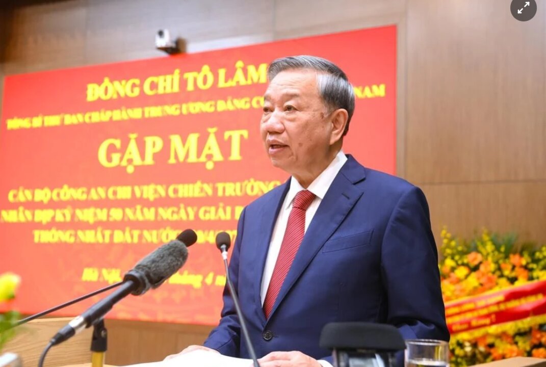 Nhân dịp kỷ niệm 50 năm Ngày giải phóng miền Nam thống nhất đất nước (30/4/1975 - 30/4/2025), chiều 8/4, tại Hà Nội, Tổng Bí thư Tô Lâm đă gặp mặt cán bộ Công an chi viện chiến trường miền Nam thời kỳ kháng chiến chống Mỹ cứu nước.