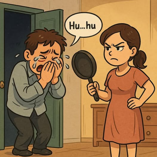 Có một anh chồng, cuối tháng lĩnh lương, bạn bè rủ đi nhậu, mải vui nên đến tận 2 giờ sáng mới trở về. Tưởng vợ ngủ rồi. Anh rón rén mở cửa vào nhà bỗng đèn bật sáng trưng, cô vợ mặt hầm hầm cầm chảo đứng chờ để hỏi tội.