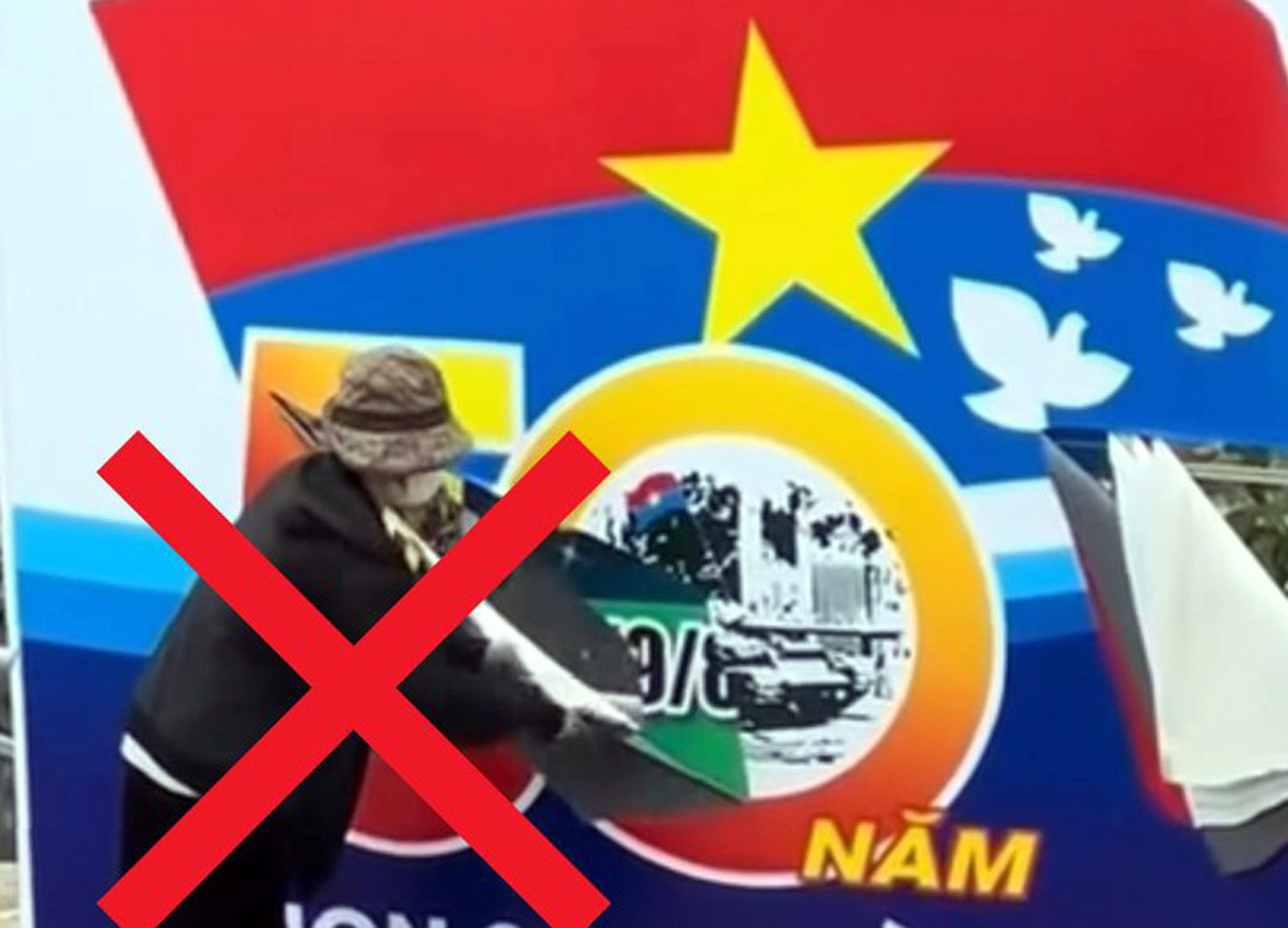 Cùng ngày, trên mạng xã hội lan truyền đoạn clip ghi lại cảnh một người phụ nữ có hành vi dùng dao rạch tấm pa nô chào mừng 50 năm ngày thống nhất đất nước. Sự việc được xác định xảy ra tại phường Thượng Đình, quận Thanh Xuân, Hà Nội.