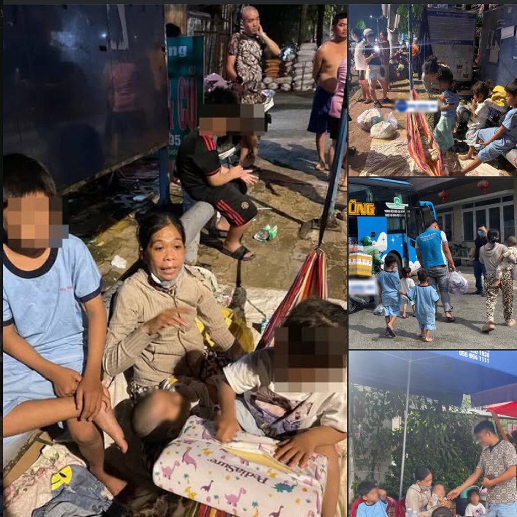 Vào tối ngày 21/4 vừa qua, người dân tại phường Bình Chuẩn (TP. Thuận An, Bình Dương) phát hiện 5 mẹ con đang nằm co ro tại trạm dừng xe buýt. Qua hỏi thăm, được biết người phụ nữ tên Trang. Chị Trang có 6 người con, trong đó 2 con đầu đã lập gia đình, 4 con nhỏ theo chị lần lượt là 11 tuổi, 6 tuổi, 4 tuổi và 17 tháng tuổi.