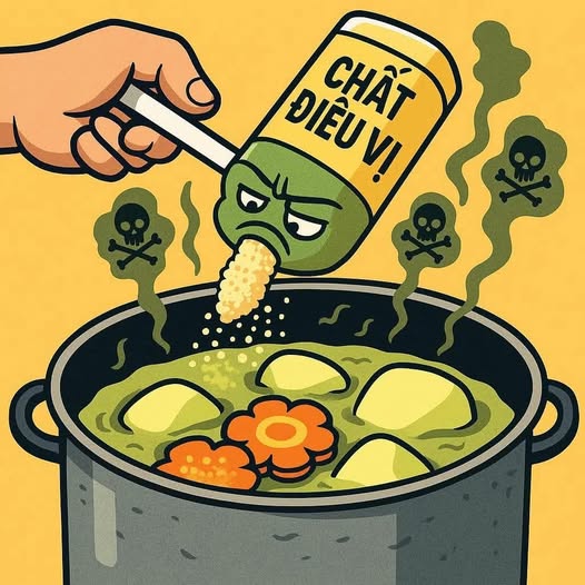 🚫 Nguy hiểm tiềm ẩn đó là khi tiêu thụ, các chất điều vị kích thích mạnh mẽ vị giác và não bộ, tạo cảm giác ngon miệng ảo, khiến người dùng lầm tưởng rằng đang ăn một món ăn bổ dưỡng. Từ mì gói, snack, nước sốt đến các món ăn nhanh, hầu hết đều chứa một lượng lớn chất điều vị, dần trở thành một phần không thể thiếu trong chế độ ăn uống của nhiều người.
