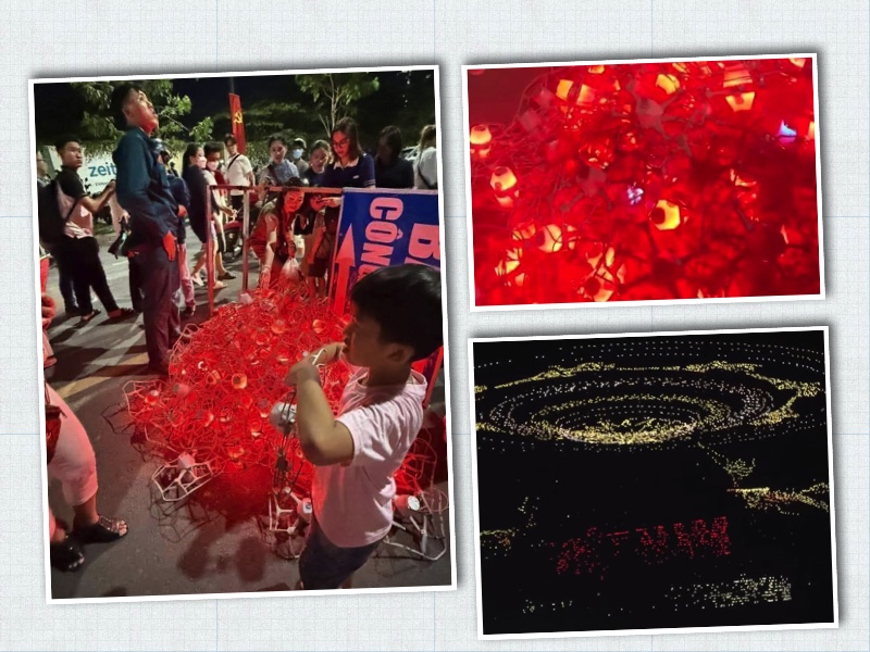 Công ty Damoda của Trung Quốc sau một thời gian dài chuẩn bị kỹ lưỡng màn tŕnh diễn ánh sáng với 10.518 Drone bay nghệ thuật cho buổi lễ ăn mừng 50 năm của ngày 30 tháng tư vừa qua tại Thành hồ đă thực hiện không thành công , do nhiễu sóng trên diện rộng khiến cho Drone bị rớt khá nhiều