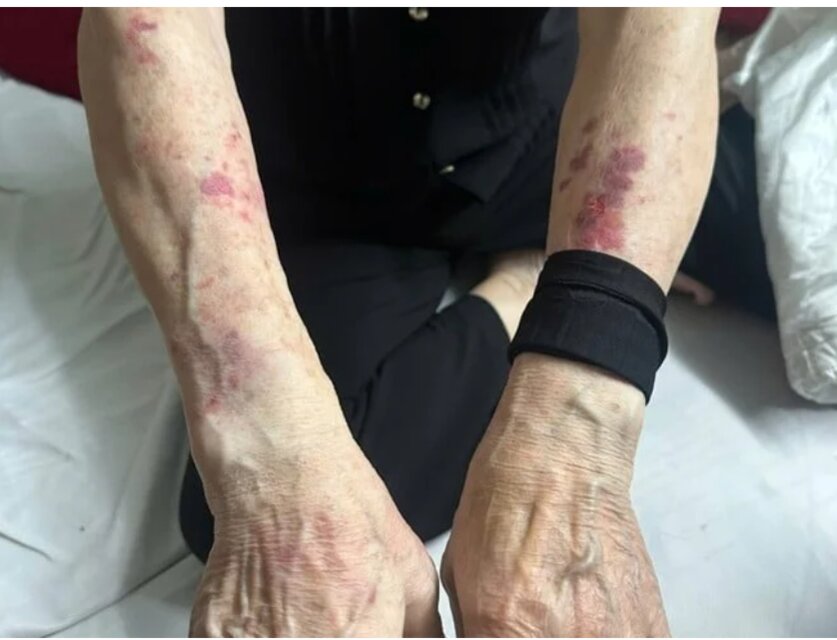 Tay nạn nhân bầm tím do bị các đối tượng khống chế. Ảnh: C.H.