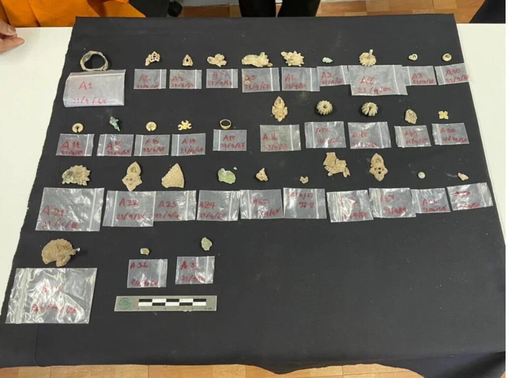 Bên trong là hàng loạt cổ vật quý như nhẫn vàng, hoa tai bạc và đôi khuyên tai đồng xoắn – được cho là lễ vật dâng Phật từ thời vương quốc Dvaravati.