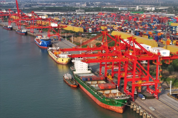 Tàu container tại cảng Nam Kinh (Giang Tô, Trung Quốc) ngày 9/4. Ảnh: Reuters