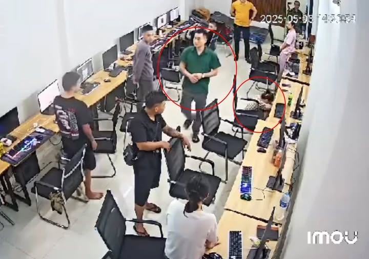 Lúc đó, camera giám sát của công ty trên quay lại cảnh một người đàn ông mặc thường phục, được cho là thuộc lực lượng chức năng, kiểm tra giấy tờ của công ty thì bất ngờ vung tay tát nhiều phát vào đầu của cô gái.