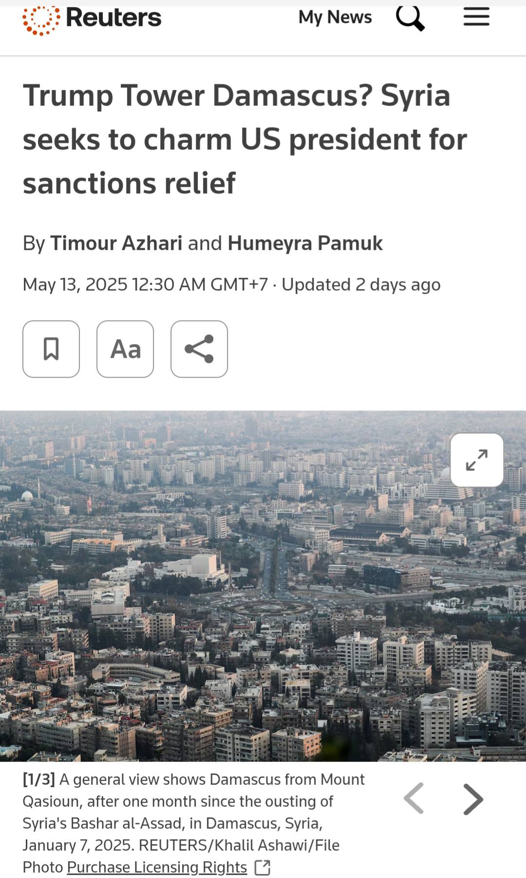 Bên cạnh đó, tổng thống Syria đã đề xuất xây dựng Trump Tower ngay tại thủ đô Damascus để bày tỏ lòng thành cảm tạ Tổng thống Trump.p.