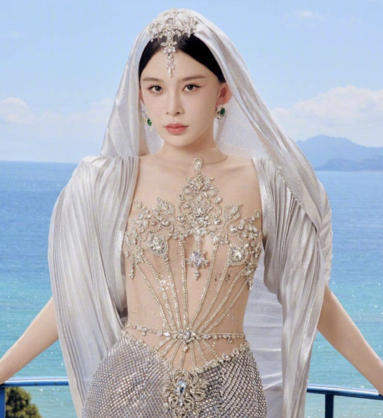 Cô chọn diện bộ đầm xuyên thấu đính đá gợi cảm, phần thân trên chỉ che bằng vài sợi xích và đá lấp lánh, phần dưới xẻ cao khoe đôi chân dài. Cô hỏi người hâm mộ: “Nếu chấm điểm từ 1 đến 10, bạn cho mấy điểm?”, nhưng phản ứng nhận về phần lớn là chỉ trích. “Cho điểm âm, chẳng biết cô hóa trang thành nhện tinh hay Bạch Cốt Tinh?”, khán giả mỉa mai.