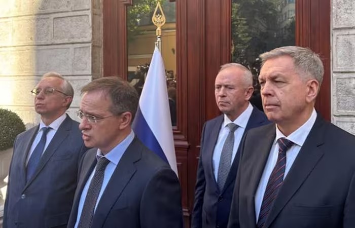 Phái đoàn do cố vấn Điện Kremlin Vladimir Medinsky dẫn đầu, ngoài ra còn có Thứ trưởng Ngoại giao Mikhail Galuzin, quan chức tình báo quân đội Igor Kostyukov, Thứ trưởng Quốc phòng Alexander Fomin.