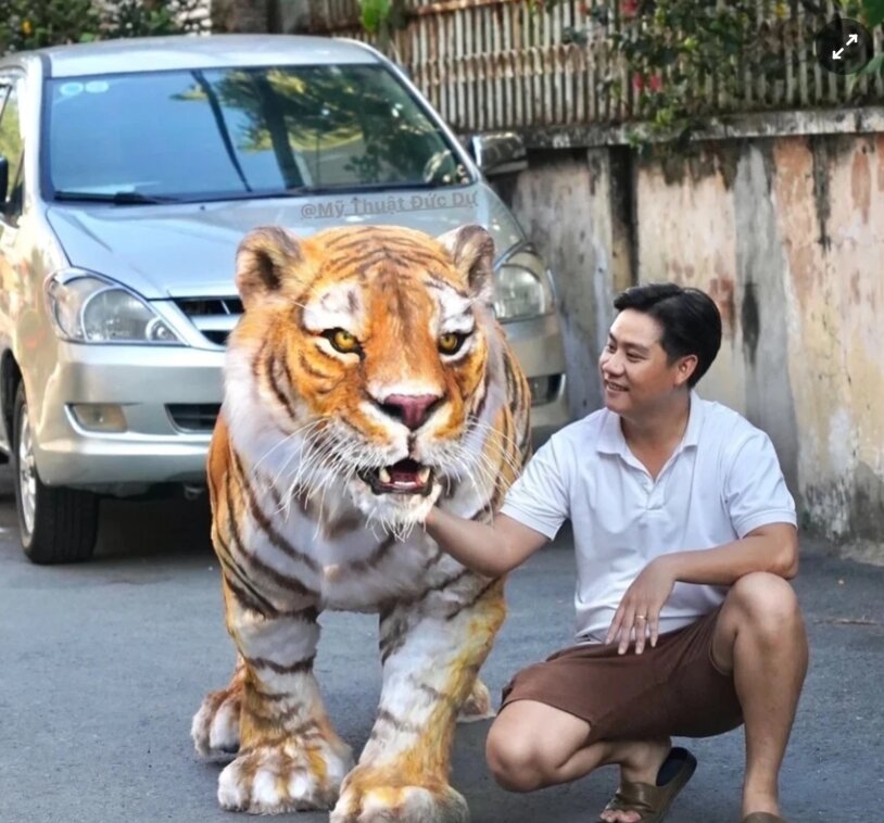 Không chỉ gây sốt trong con hẻm nhỏ, hình ảnh mô hình hổ to như thật, giống như thật này còn lan tỏa mạnh mẽ trên mạng xã hội. Những bài đăng, video mà Đức Dự đăng tải đều thu hút lượng tương tác lớn với gần 4 triệu view và hàng nghìn bình luận. Trong video, anh còn sử dụng các hiệu ứng khiến mô hình chuyển động nên người xem không phân biệt được thật giả.
