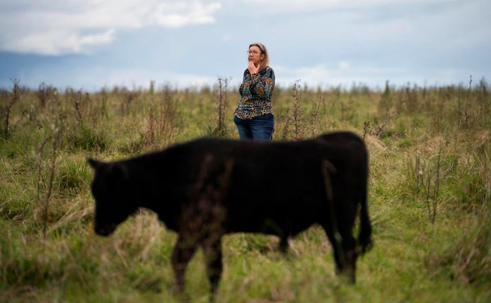 Bà Sandra Palleiro đang đi tìm những con bò bị mất tích của mình. Người phụ nữ 60 tuổi đứng giữa một cánh đồng ở vùng biên giới hẻo lánh giữa Uruguay và Brazil.
