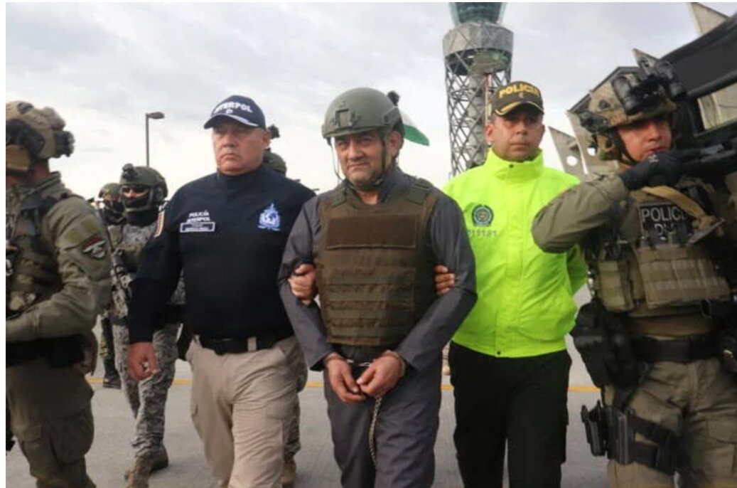 Usuga David bị cảnh sát áp giải, dẫn độ hắn đến Mỹ hồi đầu tháng 5/2022. ảnh: Reuters