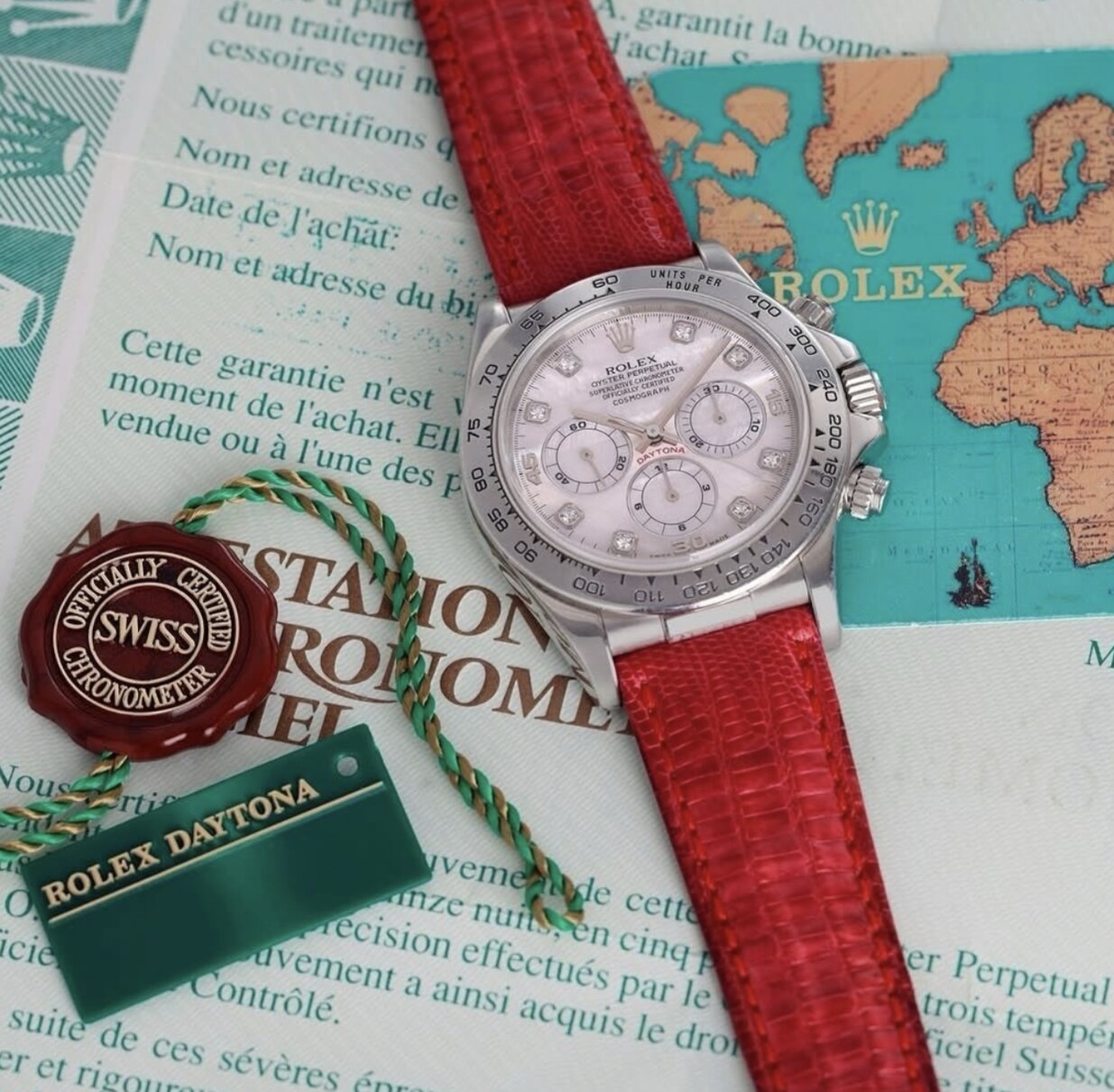 Chiếc đồng hồ sắp được đấu giá là một phiên bản Rolex Daytona bạch kim được chế tác vào năm 1999 – điều bất thường vì phải đến năm 2013, Rolex mới chính thức giới thiệu các mẫu Daytona làm từ bạch kim ra thị trường. Mặt đồng hồ được làm từ ngọc trai thiên nhiên, đính kèm 10 viên kim cương và không nằm trong bất kỳ bộ sưu tập thương mại nào của hãng.