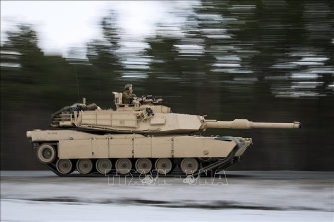 Binh sĩ Mỹ điều khiển xe tăng M1 Abrams tham gia một cuộc tập trận của Tổ chức Hiệp ước Bắc Đại Tây Dương (NATO). Ảnh tư liệu: AFP/TTXVN