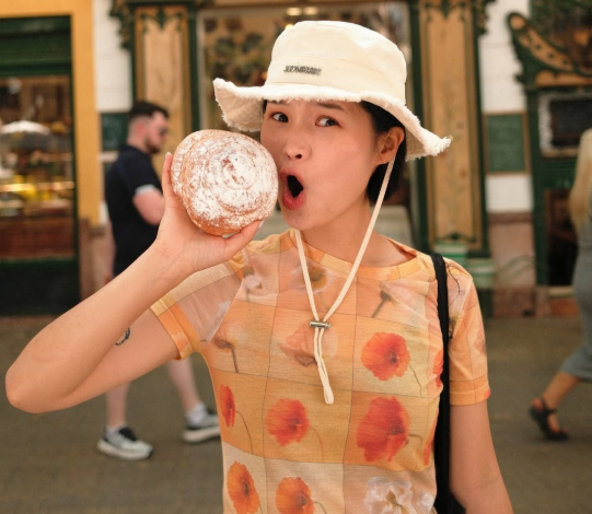 Cô chia sẻ những khoảnh khắc đời thường một cách chân thực và dí dỏm, như việc bị người dân địa phương nhìn chằm chằm, tham gia lớp học yoga kỳ lạ, hay mặc cả với người bán hàng.