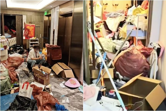 Phú bà ở căn hộ triệu đô, tích trữ rác khắp nơi, nhà bốc mùi hôi hám. Ảnh: SCMP
