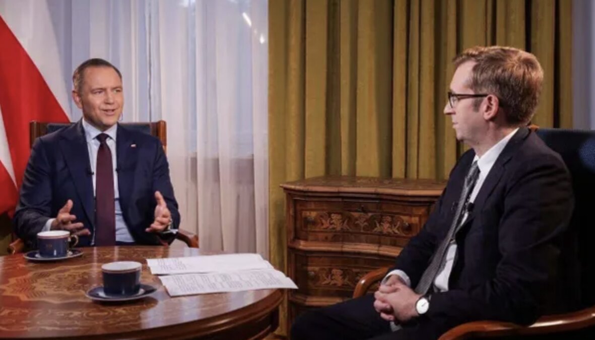 Tổng thống đắc cử Ba Lan Karol Nawrocki trả lời phỏng vấn. (Ảnh: Mandiner)